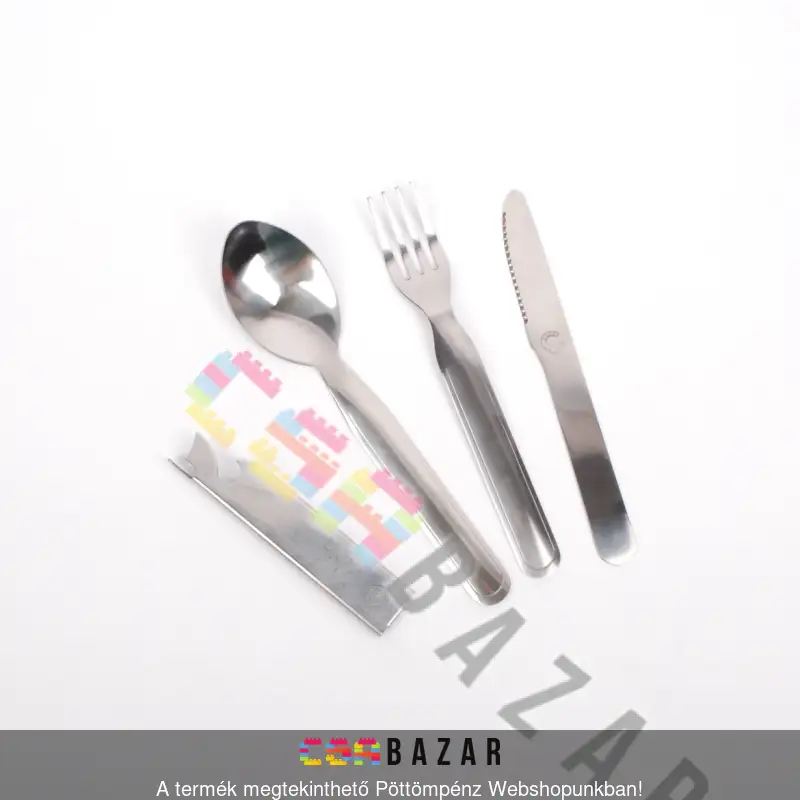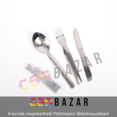 A csomag 4 részből áll, 1 db kanalat, 1 db villát, és 1 db kést tartalmaz konzervnyitó tartóban, melyben az evőeszközök egymásra helyezhetők.