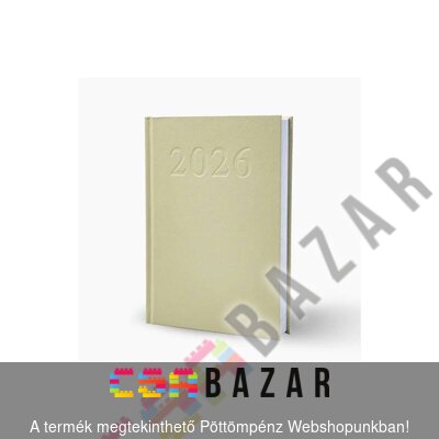 Határidőnapló, agenda 2026 bézs borítóval - napi beosztással, fehér lapokkal - A5